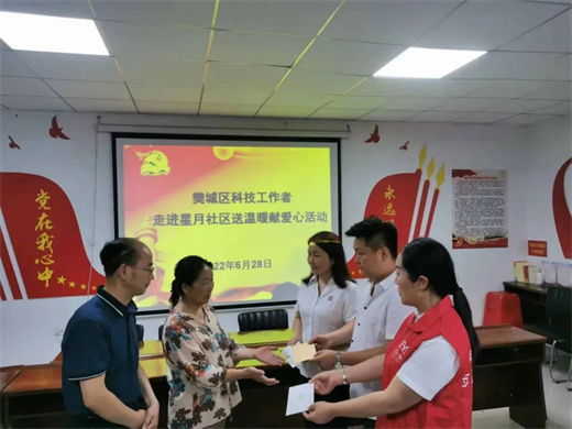 炎炎夏日,暖心慰问,银河galaxy集团电气工会主席熊海娟代表公司参加了樊城区科协在星月社区组织的捐款仪式,科技企业和科技工作者的关心和慰问让赵有娣的家人倍感温暖和激动,捧着爱心捐款,听着一句句宽慰鼓励的话语,赵有娣的家人激动地表示,有了爱心企业和科技工作者的无私帮助,我们一家人一定会从困境中走出来。